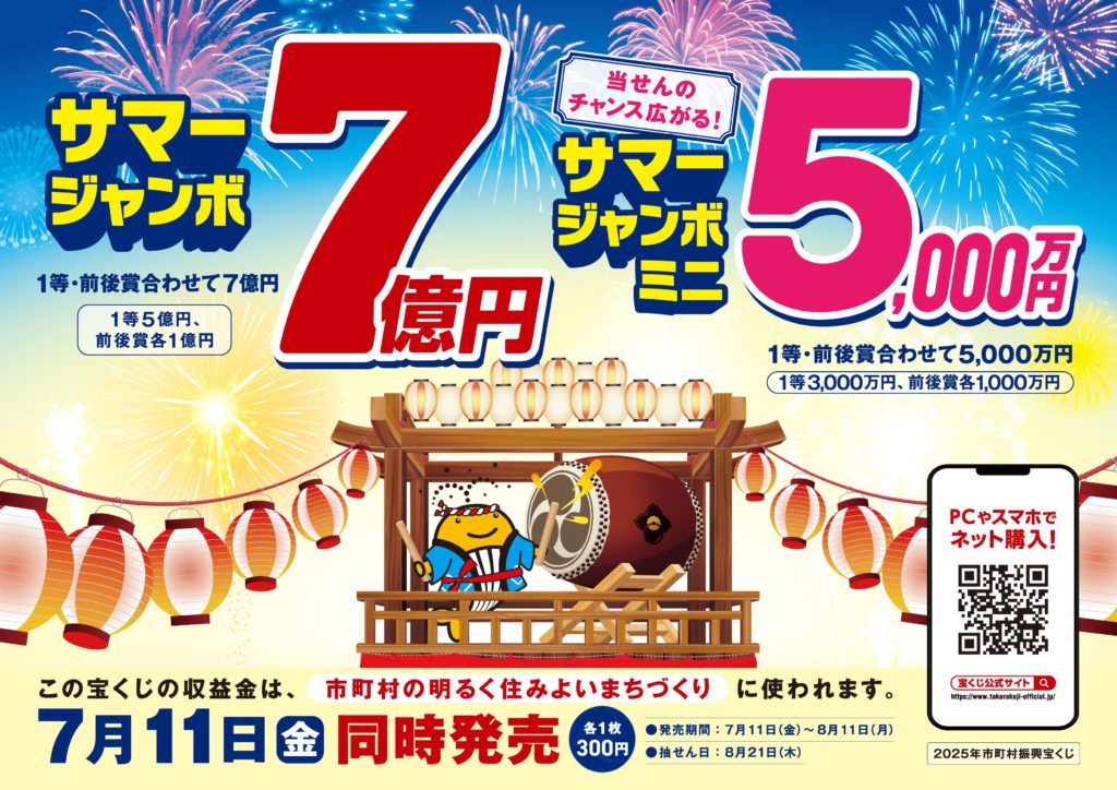 7月11日(金)から8月11日(月)までサマージャンボ宝くじが発売中です。